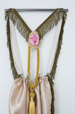 A Theater Of One (detail), 2021, varied fabrics, embroidery, tie-back, ribbons and bullion fringes 200 x 150 x 150 cm